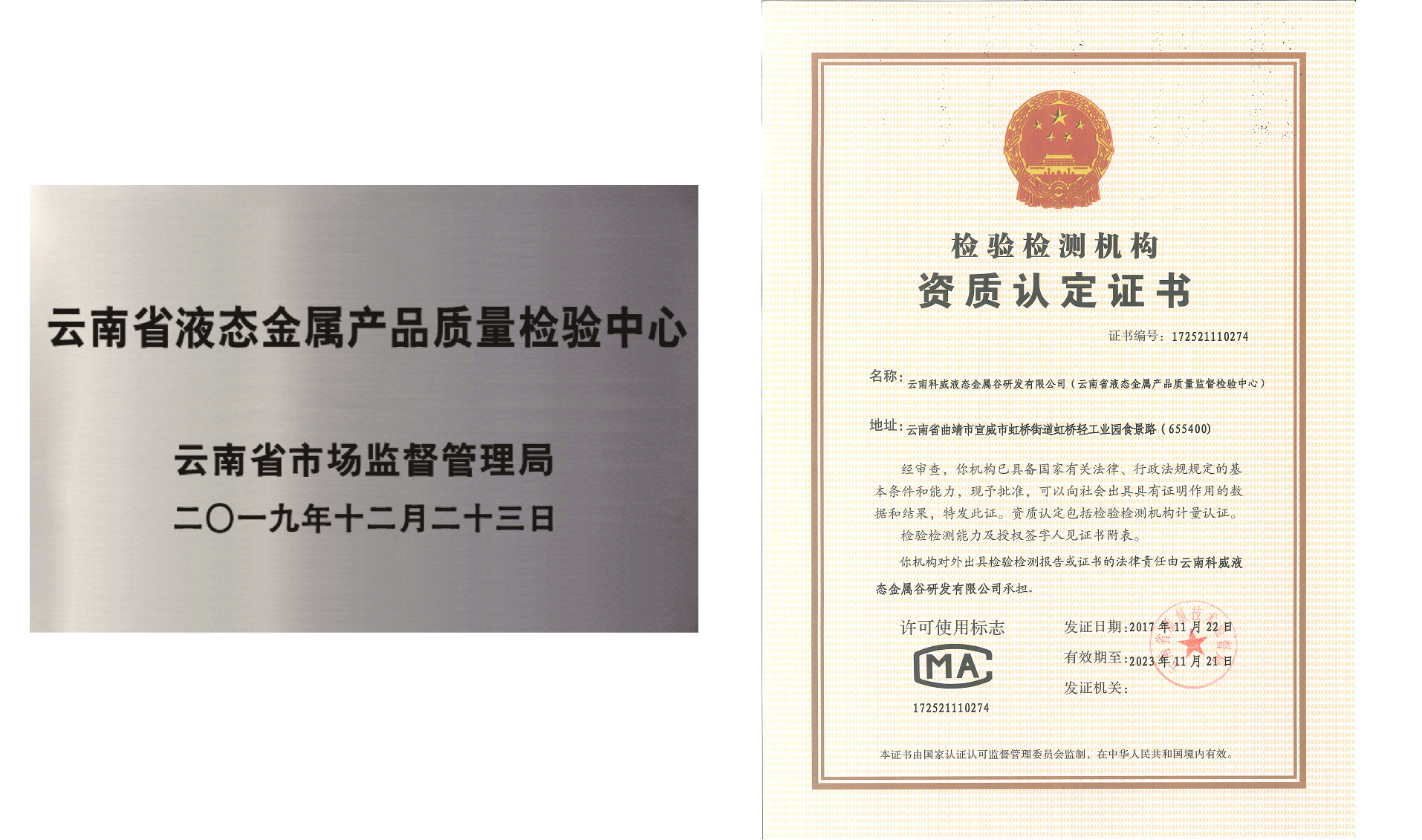 云南省液態(tài)金屬產(chǎn)品質(zhì)量檢驗(yàn)中心是全國首個專業(yè)于液態(tài)金屬材料和產(chǎn)品的第三方檢驗(yàn)檢測機(jī)構(gòu),2017年通過CMA資質(zhì)認(rèn)定,2019年獲批準(zhǔn)成立省級質(zhì)檢中心。現(xiàn)有專業(yè)技術(shù)人員30名,其中研究生及以上學(xué)歷8人,中級及以上技術(shù)職稱人員8人。現(xiàn)有檢測實(shí)驗(yàn)室1000余平方米,固定資產(chǎn)原值1500萬元,設(shè)有熱學(xué)、力學(xué)、化學(xué)、電學(xué)、表面性能、環(huán)境試驗(yàn)等專業(yè)實(shí)驗(yàn)室。