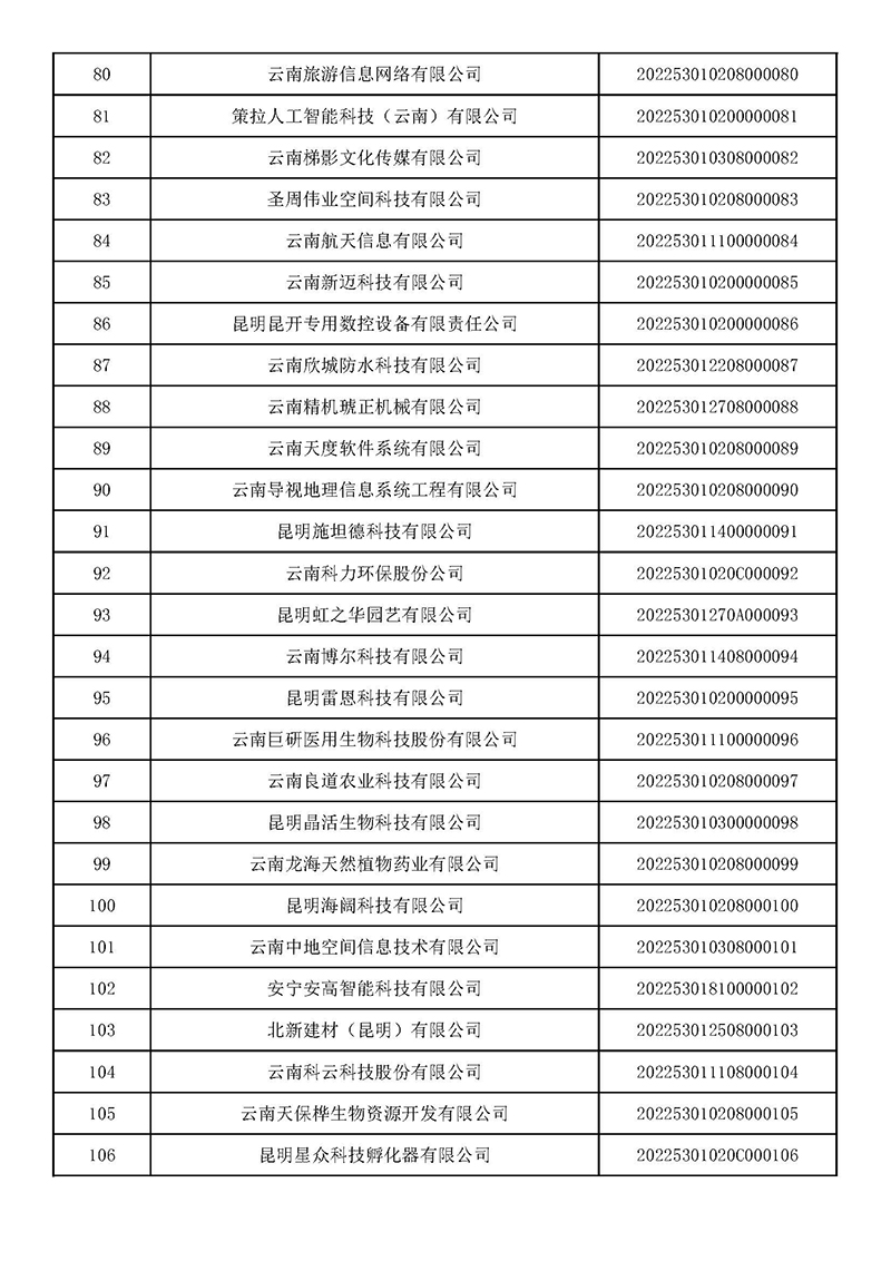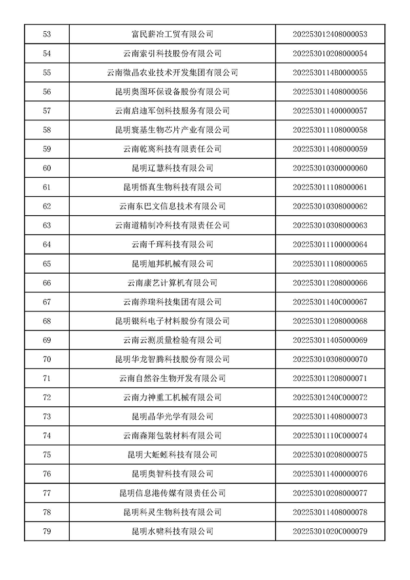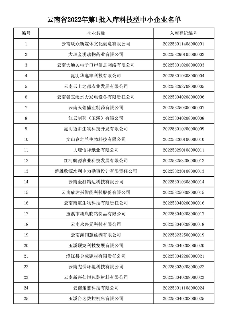 云南:2022年第一批入庫國家科技型中小企業(yè)名單