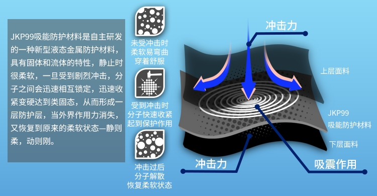 JKP99柔性仿生吸能防護(hù)材料運(yùn)用廣泛,目前應(yīng)用于公司康復(fù)理療、運(yùn)動(dòng)防護(hù)等系列產(chǎn)品上。