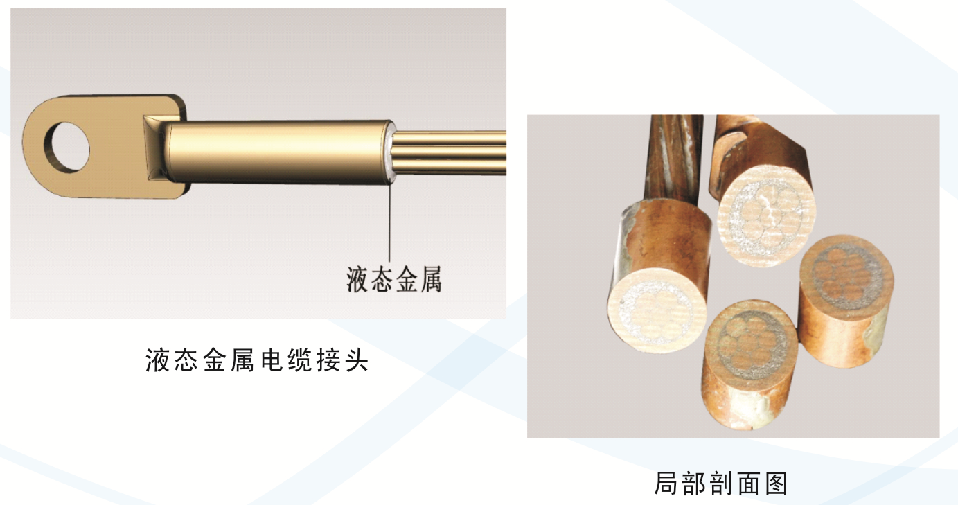 液態(tài)金屬電纜接頭是利用其良好的導(dǎo)電性、流動(dòng)性及潤(rùn)涅性能,使液態(tài)全屬充分填充在電纜連接件中,起到降低電纜連接處摘觸電阻、增大電纜間接觸面積和提高電纜接頭整體機(jī)械強(qiáng)度,既滿足電纜連接的操作便捷度要求,又能保障線路的穩(wěn)定安全使用。解決傳統(tǒng)電纜連接方法容易導(dǎo)致電纜芯損壞、連接點(diǎn)接觸電阻過大、溫度過高,不能長(zhǎng)期安全穩(wěn)定運(yùn)行等問題。
