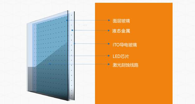 2、液態(tài)金屬材料的應(yīng)用,避免了顯示屏上的導(dǎo)線,實(shí)現(xiàn)了玻璃原有的美觀與整潔,在看不見導(dǎo)線的情況下,實(shí)現(xiàn)玻璃屏顯示;